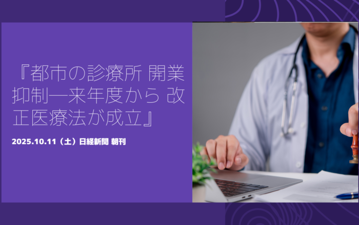 2025.12.6(土)『都市の診療所 開業抑制―来年度から 改正医療法が成立』日経新聞 朝刊