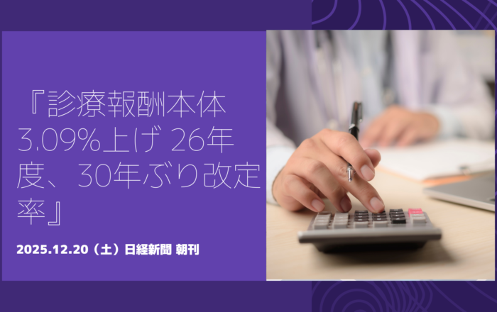 2025.12.20(土)『診療報酬本体3.09%上げ 26年度、30年ぶり改定率』日経新聞 朝刊
