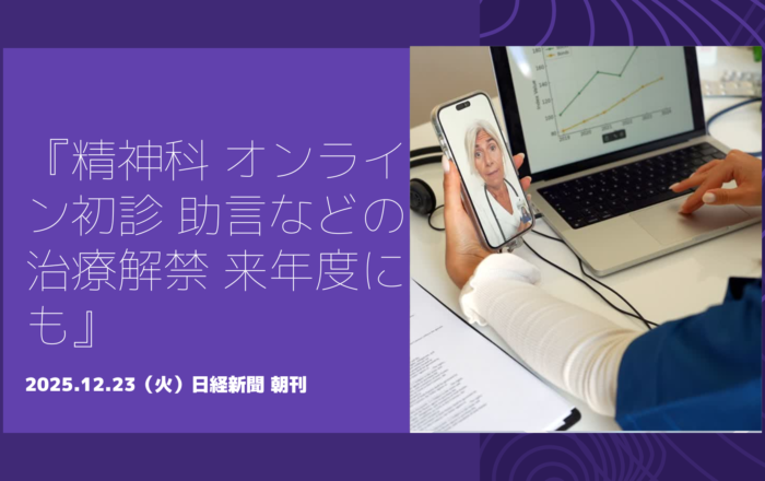 2025.12.23(火)『精神科 オンライン初診 助言などの治療解禁 来年度にも』日経新聞 朝刊
