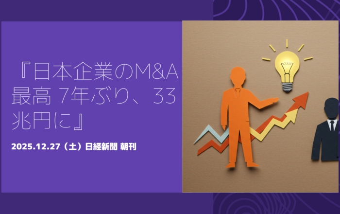 2025.12.27(土)『日本企業のM&A最高 7年ぶり、33兆円に』 日経新聞 朝刊