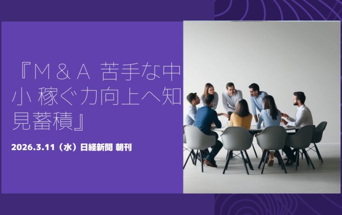 ・ 「中小が合併を巡るノウハウを蓄積できれば、海外企業の買収を通じて国外に市場を見いだし収益力を高めるチャンスにもなる」と話す。