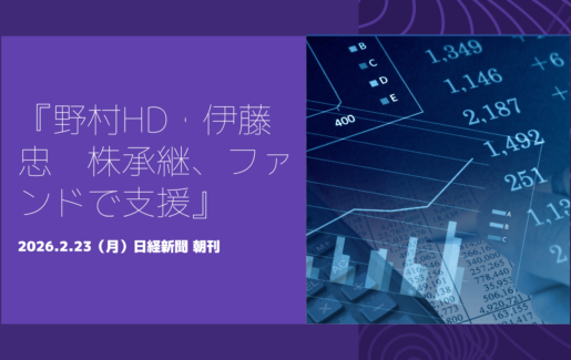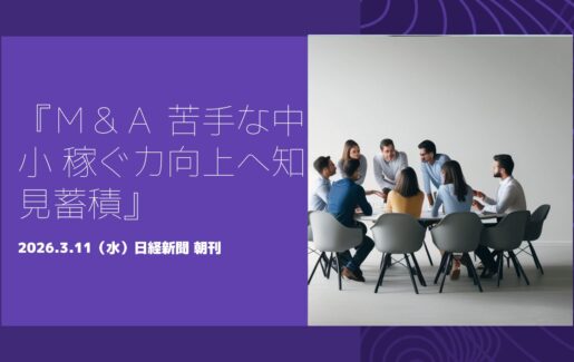2026.3.11(水)『M&A 苦手な中小 稼ぐ力向上へ知見蓄積』 日経新聞 朝刊