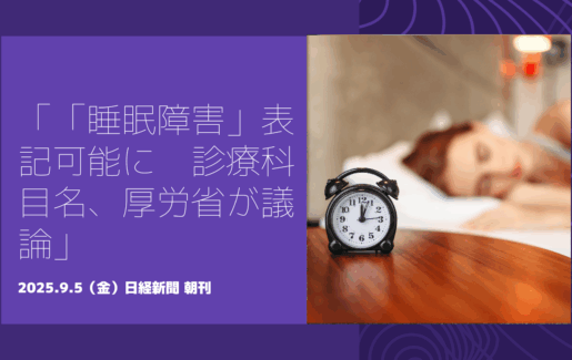 2025.9.5(金)「「睡眠障害」表記可能に 診療科目名、厚労省が議論」日経新聞 朝刊