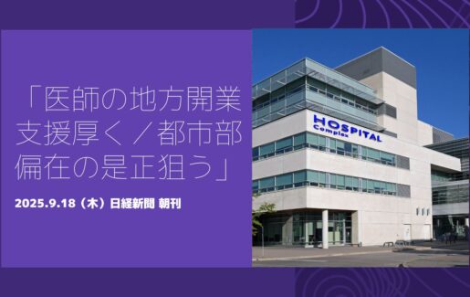 2025.9.18(木)「医師の地方開業 支援厚く/都市部偏在の是正狙う」日経新聞 朝刊