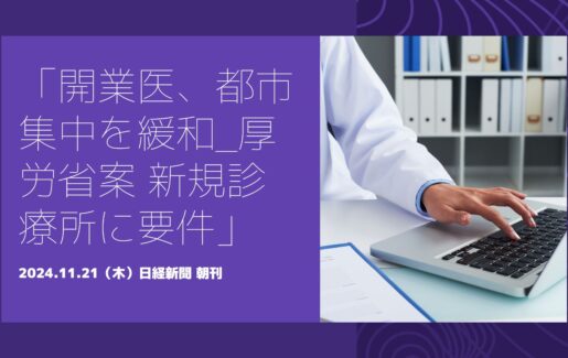 2024.11.21(木)「開業医、都市集中を緩和_厚労省案 新規診療所に要件」日経新聞 朝刊