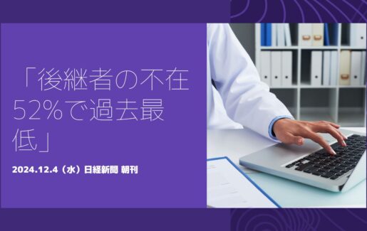 2024.12.4(水)「後継者の不在 52%で過去最低」日経新聞 朝刊