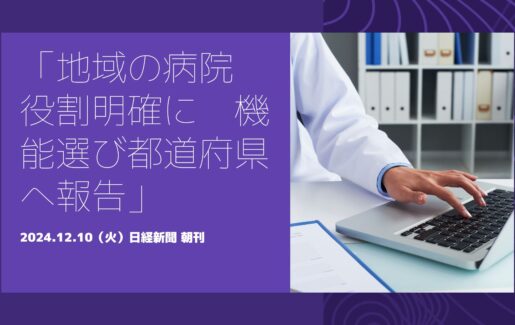 「地域の病院 役割明確に 機能選び都道府県へ報告」2024.12.10(火)日経新聞 朝刊