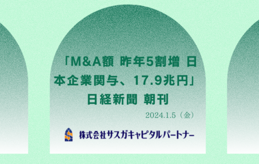 2024.1.5(金)「M&A額 昨年5割増 日本企業関与、17.9兆円」日経新聞 朝刊