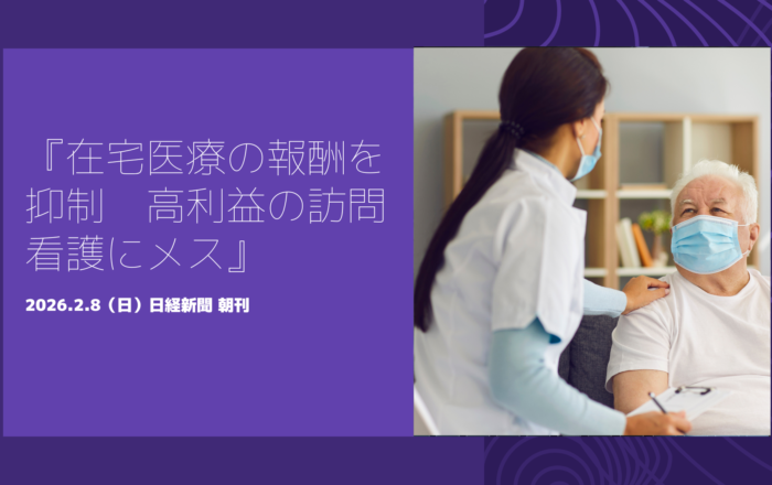 2026.2.8(日)『在宅医療の報酬を抑制 高利益の訪問看護にメス』日経新聞 朝刊